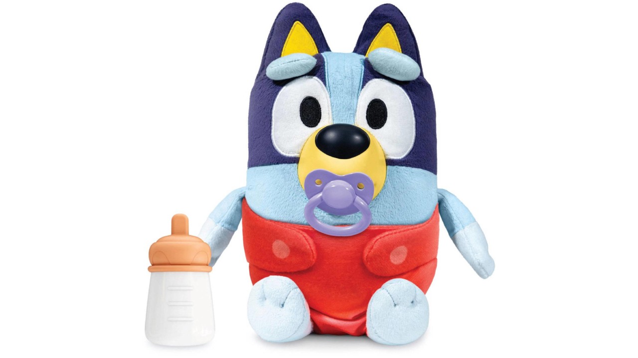 Baby Bluey includes 2 accessories: a bottle and a pacifier.