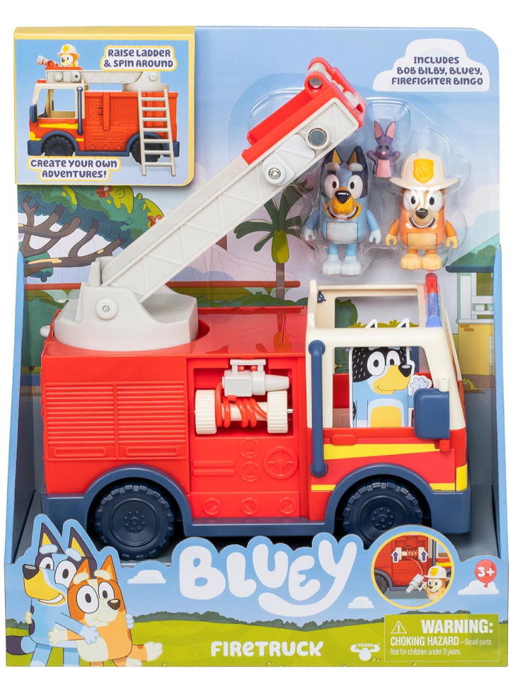 Camionul de pompieri vine cu 2 figurine, pompierul Bingo și Bluey. Include chiar și un accesoriu Bob Bilby care se potrivește pe mâna lui Bluey.