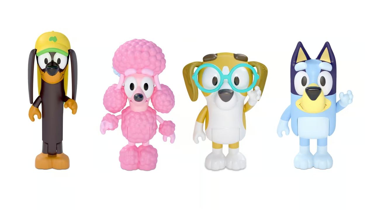 This 4-piece set includes Bluey and three of her friends: Snickers, Honey and Coco!