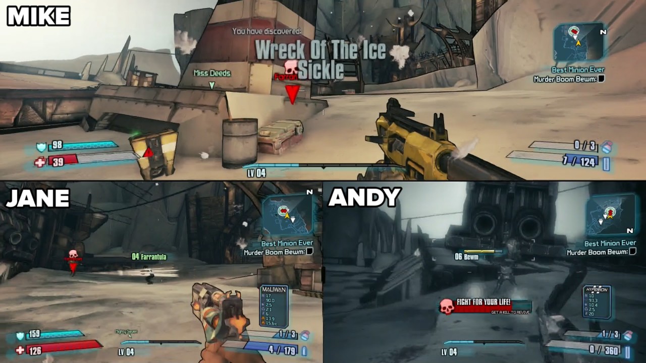 - Borderlands dispune de un sistem perfect care îți permite să intri și să ieși dintr-o campanie fără a fi nevoie să repornești jocul, in plus, puteți chiar să vă luați noul echipament din orice joc în oricare altul.