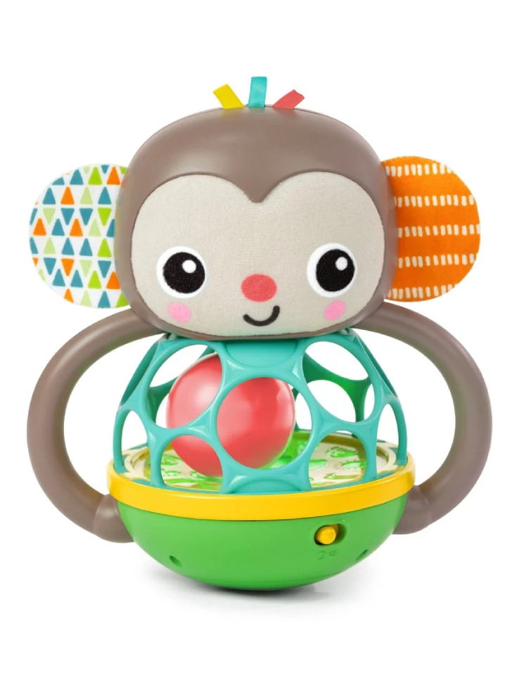Bebelușul va înnebuni cu siguranță după jucăria multisenzorială Grab & Giggle Monkey! Fabricată cu tehnologia flexibilă și durabilă Oball de la Bright Starts.