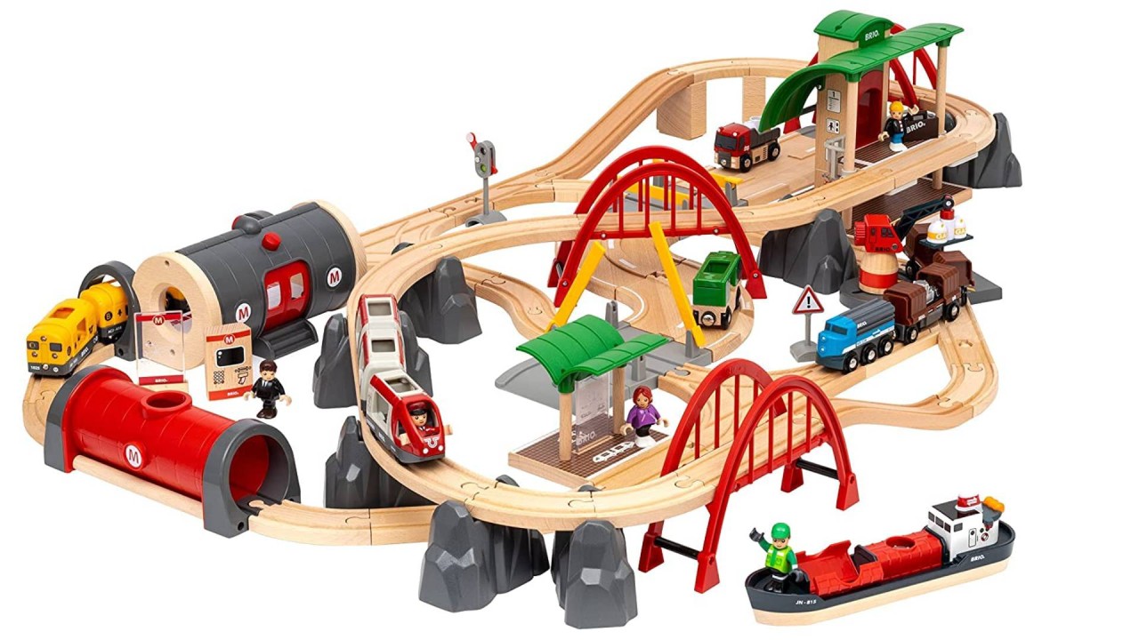 Setul Deluxe de Căi Ferate este un set de trenuri plin de aventură, cu trenuri de pasageri, trenuri de marfă, scene portuare și distracție cu metroul. Perfect pentru orice iubitor de trenuri, acest set complet inclus stații, macarale, poduri și figurine. Este un produs creat de BRIO, un renumit producător de jucării. Încurajați creativitatea copilului dvs., antrenându-l să devină un adevărat inginer de tren, cu acest set Deluxe Railway din lemn. Cu ajutorul acestui set, copiii pot explora lumea înconjurătoare într-un mod distractiv și educational. Lăsați-ți imaginația să zburde și stabiliți destinația aventurii cu acest set Deluxe Railway de la Brio.