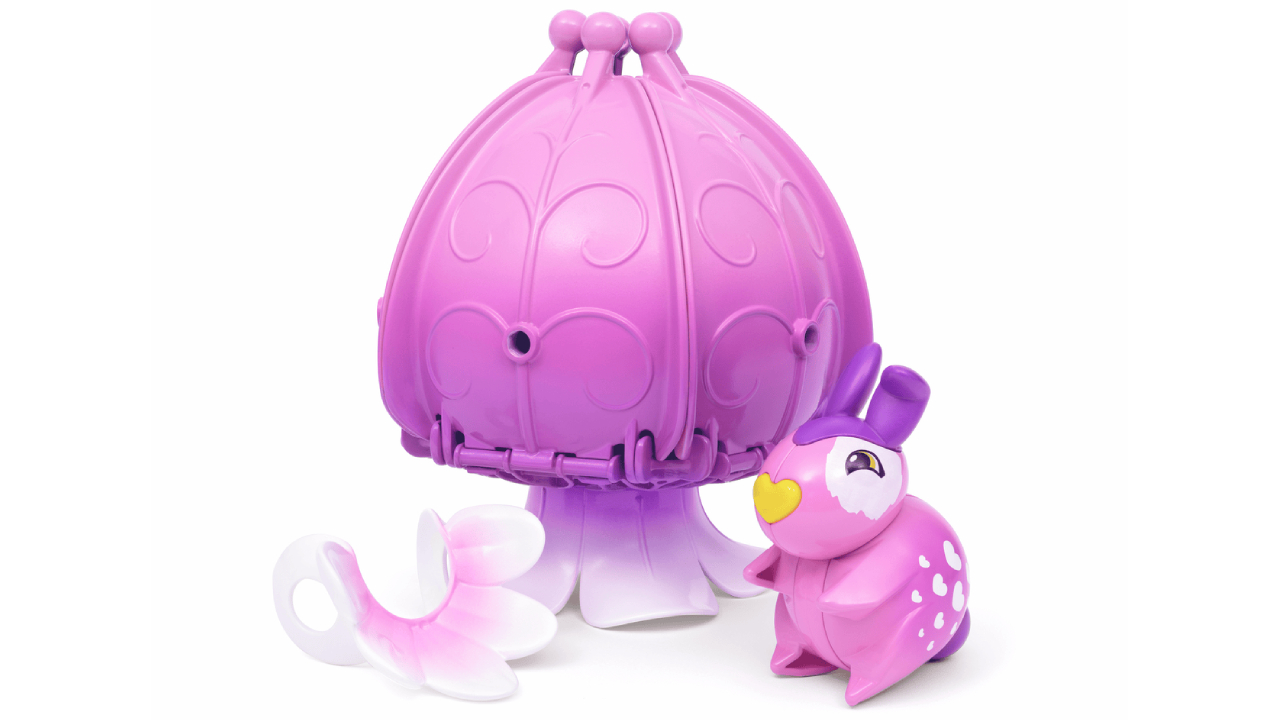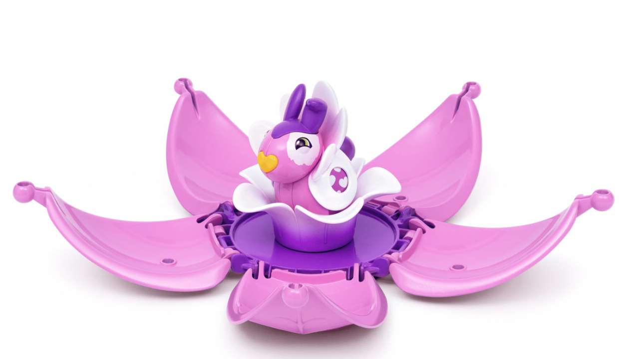 Floarea mare se potrivește cu culorile roz și alb strălucitoare ale lui Heather și se deschide pentru a dezvălui un mic spațiu confortabil pentru ca această figurină Flora să se joace și să decoreze.