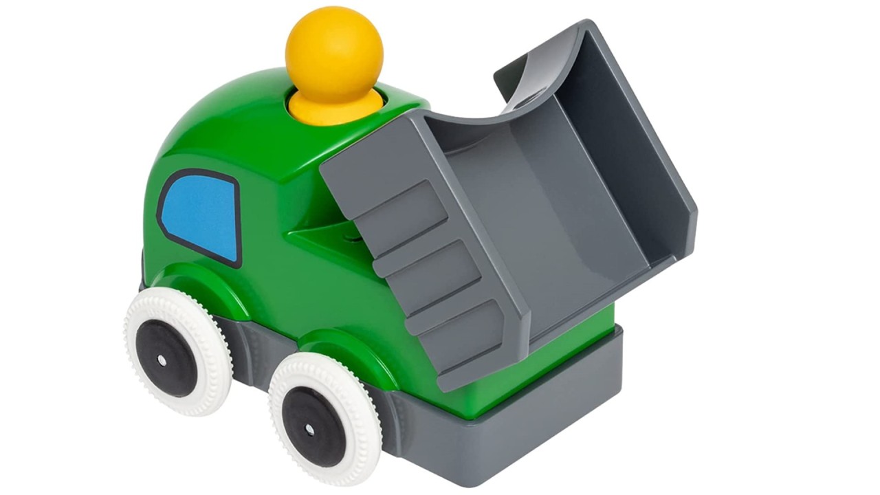 Iată camionul Push & Go Truck, un camion de jucărie pentru copiii mici care învață să se târască și să meargă.