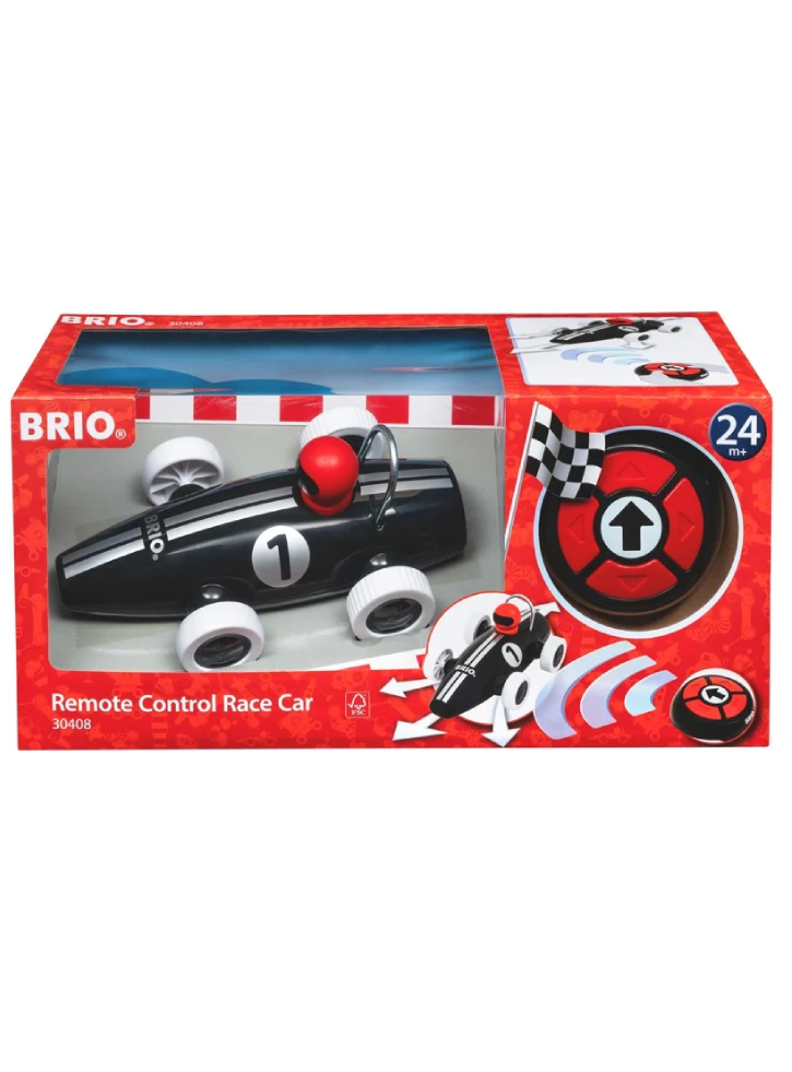 Vroom, vroom! Mașina de curse cu telecomandă BRIO, cu șasiul său negru strălucitor și aspectul clasic BRIO, le va oferi copiilor ore întregi de distracție la curse.