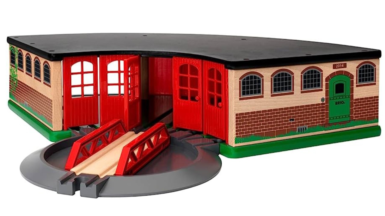 Grand Roundhouse este un accesoriu de tren care are spațiu pentru până la 5 trenuri și are 5 uși in fata si două uși glisante din spate. Include, de asemenea, o placă rotativă cu comutator.
