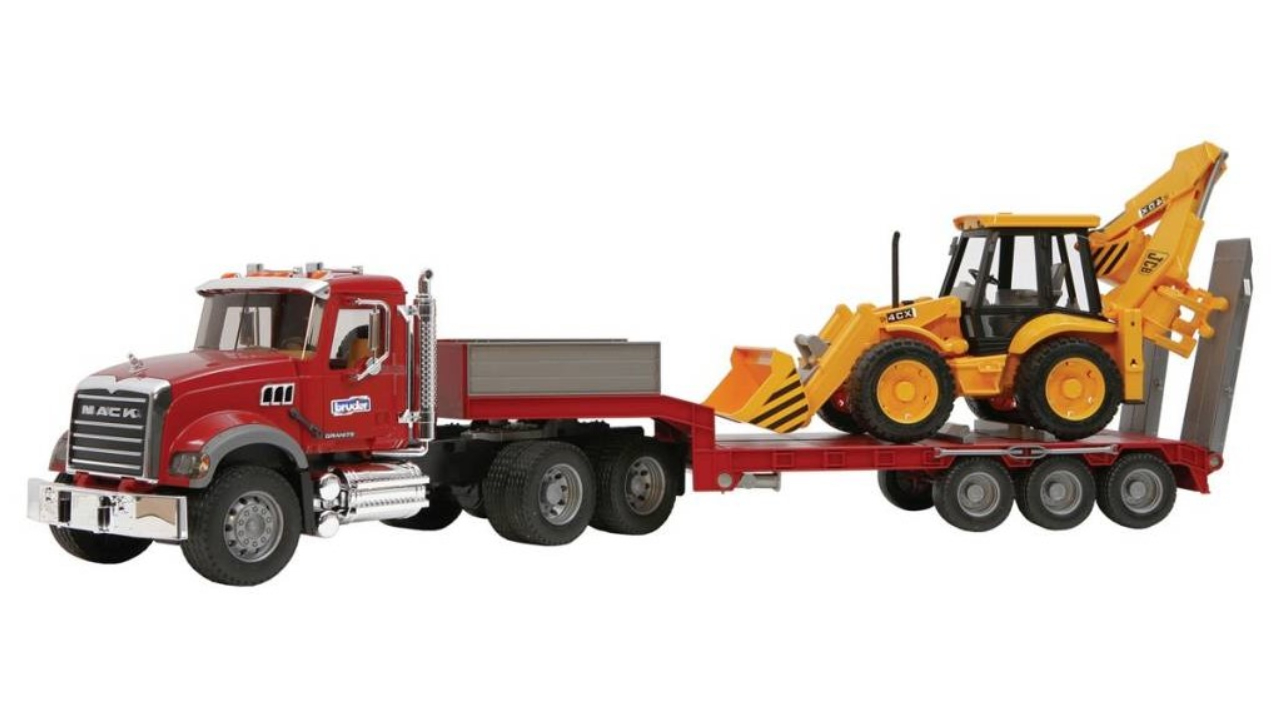 Acest set este compus dintr-un camion american Mack Granite, o remorcă și un tractor JCB 4CX. Aceste modele de lux au fost fabricate din plastic ABS rezistent și de înaltă calitate. Camionul dispune de detalii cromate, oglinzi retrovizoare rabatabile, iar ușile și capota motorului se pot deschide. Platforma are o rampă rabatabilă, opritori și cuple pivotante funcționale. Încărcătorul frontal are o cupă, partea din spate este mobilă, iar scaunul șoferului și volanul se pot mișca, oferind o multitudine de opțiuni de joacă. Anvelopele mari, cu un profil aderent, asigură o deplasare confortabilă atât în interior, cât și în exterior.