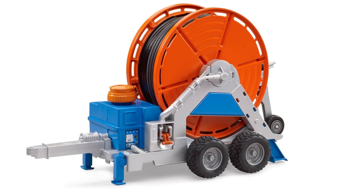 Young farmers can use the crank to unroll a 1.8 meter long hose, to which a precisely detailed sprinkler truck is attached.