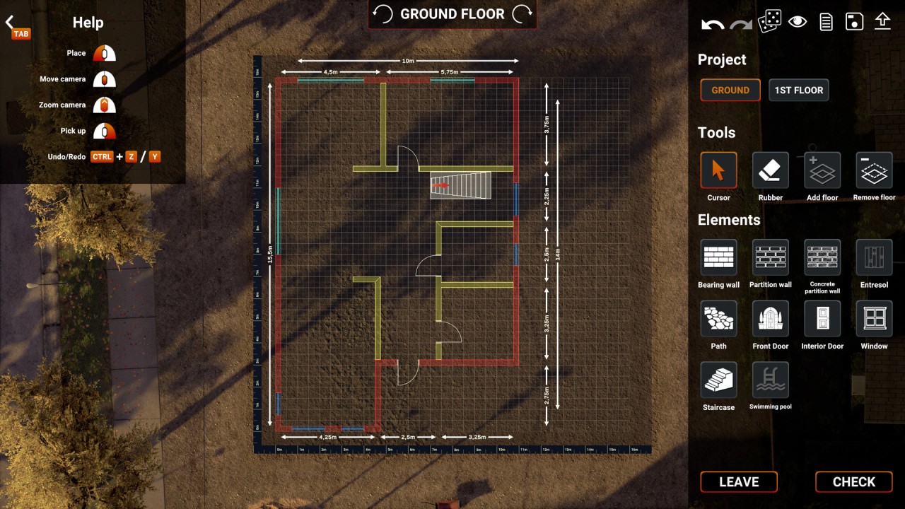 Every big construction project starts with a pencil and a piece of paper. And so, it is in the Builder Simulator. You’ll start your work by designing a house on a drawing board. Lines, curves, squares – the whole layout is up to your taste. The only thing that can hold you back is your own imagination. So use this head of yours and draw the most excellent building of it all! And if you don't have an idea for a design, you can always choose one of the projects we have prepared.