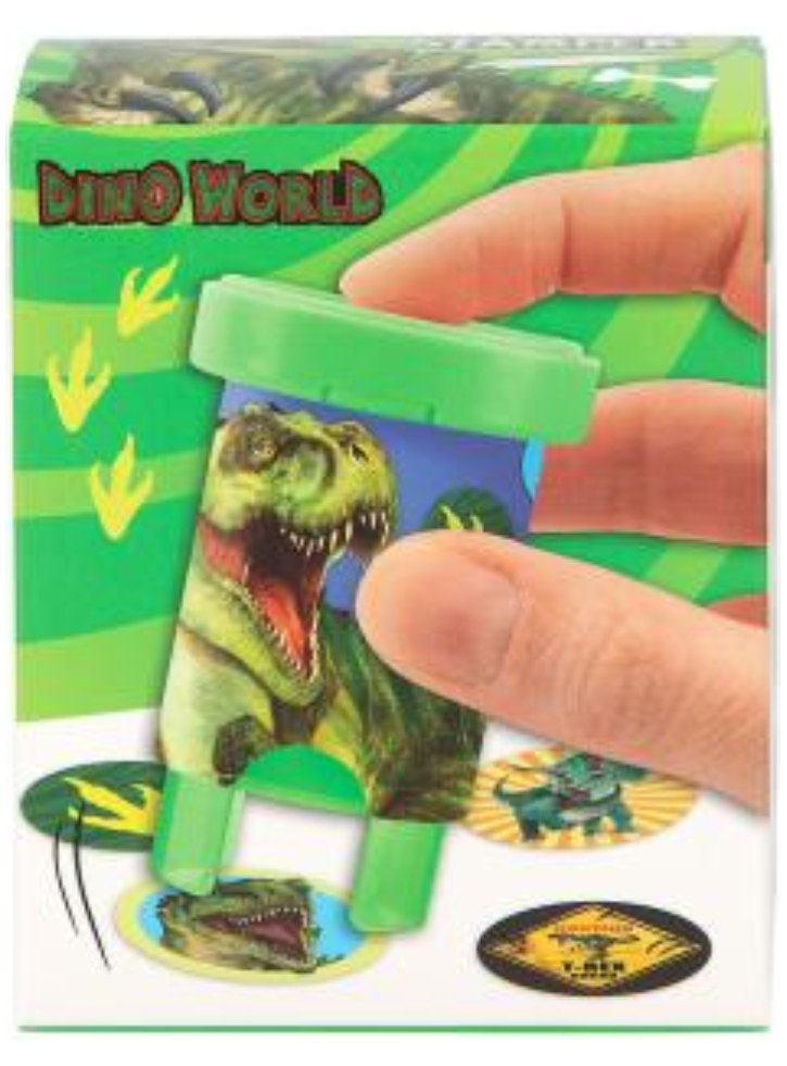 Dino World Sticker Stamper este un instrument creativ conceput pentru aplicarea ușoară a autocolantelor cu tematică dinozaur.