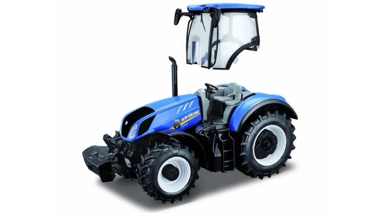 Acest model reproduce cu fidelitate tractorul New Holland T7.315, oferind o experiență autentică și educativă pentru cei care doresc să exploreze lumea agriculturii la scară redusă.