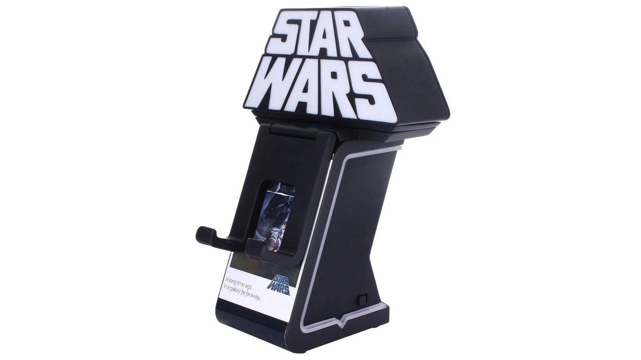 Inspired by the iconic Star Wars opening crawl, the illuminated logo sits on an illuminated column, detailed with a classic Star Wars poster decal, featuring our unique patented R.E.S.T. system, ready to hold anything from your phone, controllers and anything else you entrust to them both from this galaxy and from the ones far, far away.