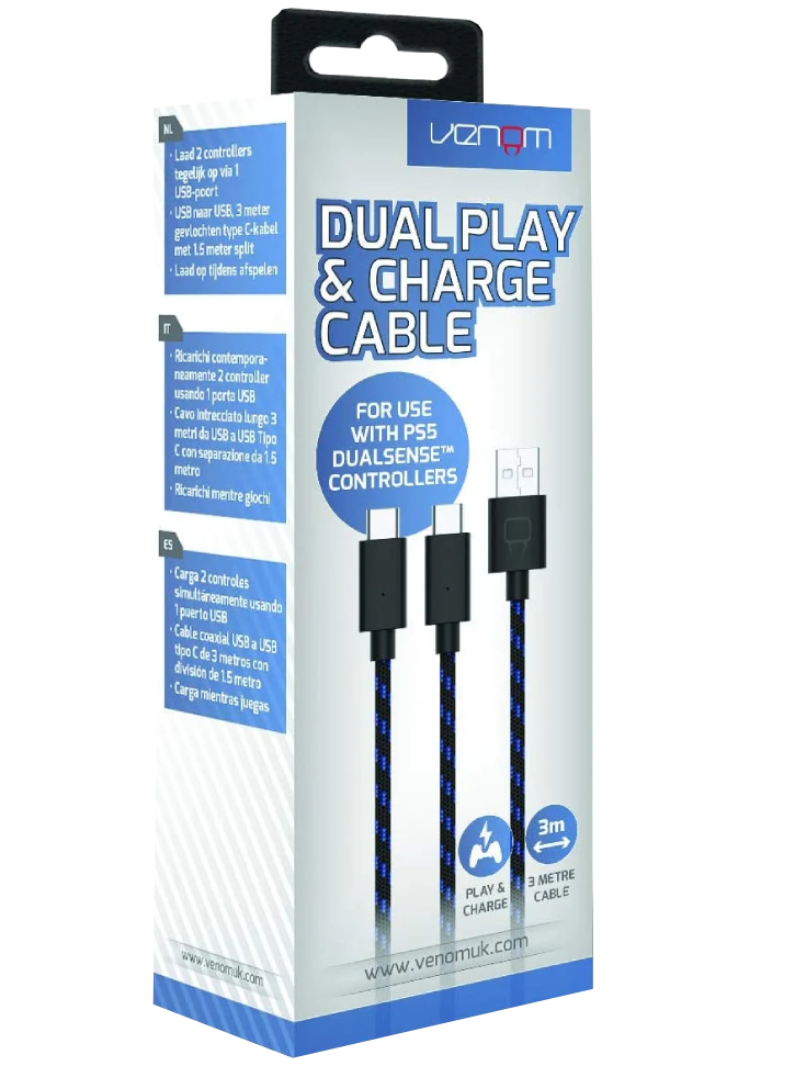 Acest cablu de încărcare Venom este perfect pentru controlerele PlayStation 5 (PS5) Dualsense. Beneficiați de un joc continuu și încărcare simultană cu acest cablu din cauciuc moale, conceput pentru o performanță optimă.