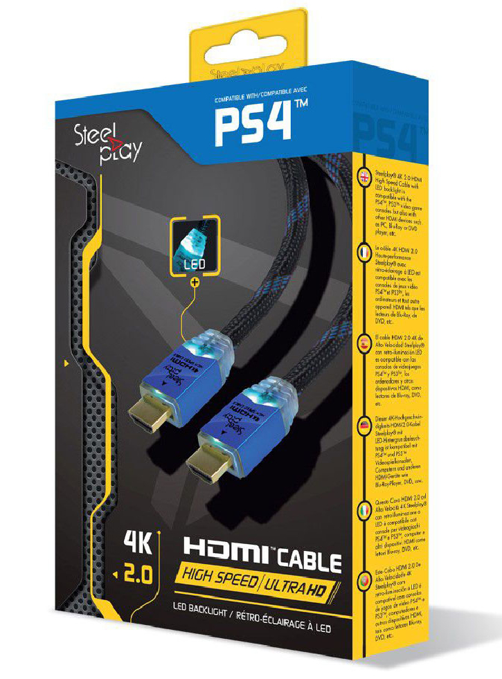Cablul de mare viteză Steelplay 4K 2.0 HDMI este compatibil cu consolele de jocuri video PS4, PS3, Xbox One, Xbox 360.