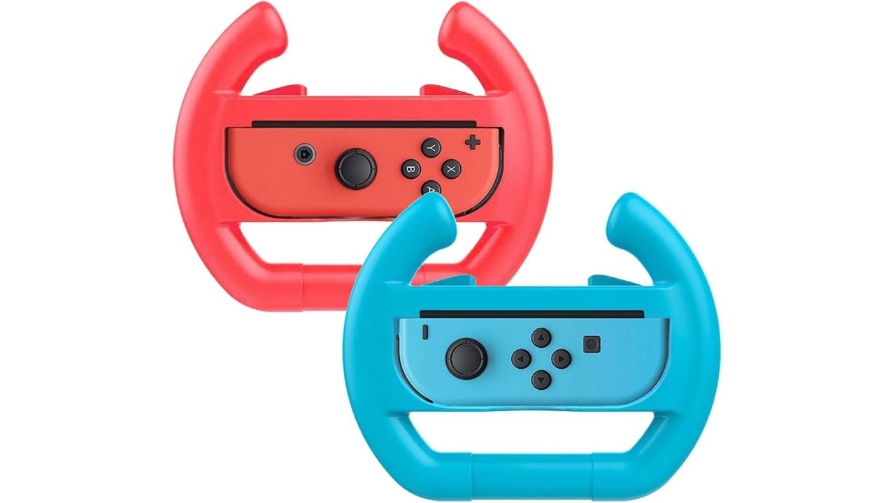 This package includes 2x steering wheels,one neon red and one neon blue, which are designed for Nintendo Switch Joy-Con controllers.