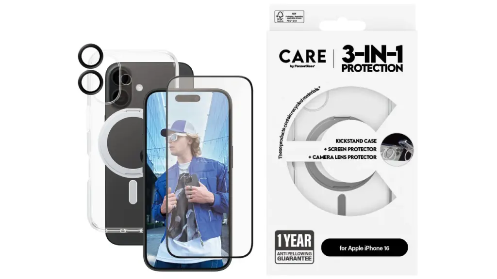 Îmbunătățiți protecția telefonului dvs. cu pachetul de funcții 3 în 1 CARE by PanzerGlass, conceput pentru cei care solicită calitate premium pentru dispozitivul lor.