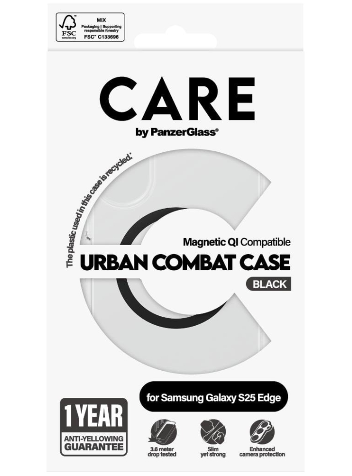 CARE by PanzerGlass Flagship Urban Combat Black QI este proiectată special pentru cei care nu acceptă compromisuri - nici în protecție, nici în estetică.