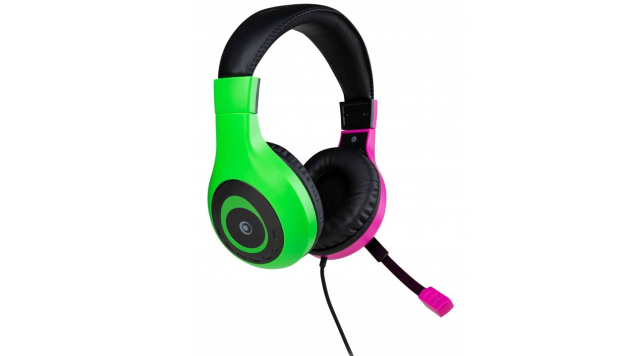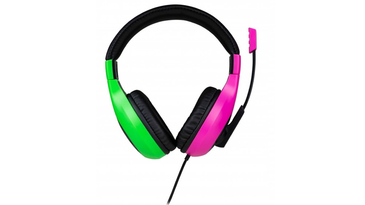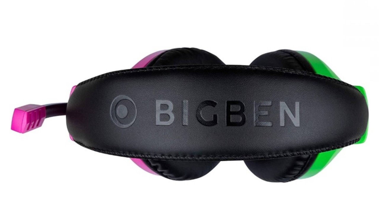 Cască de jocuri stereo pentru seria Nintendo Switch, fabricată de BigBen, cu design unic și eleganță în culoarea roz și verde. Această cască oferă o experiență de joc imersivă și confortabilă.