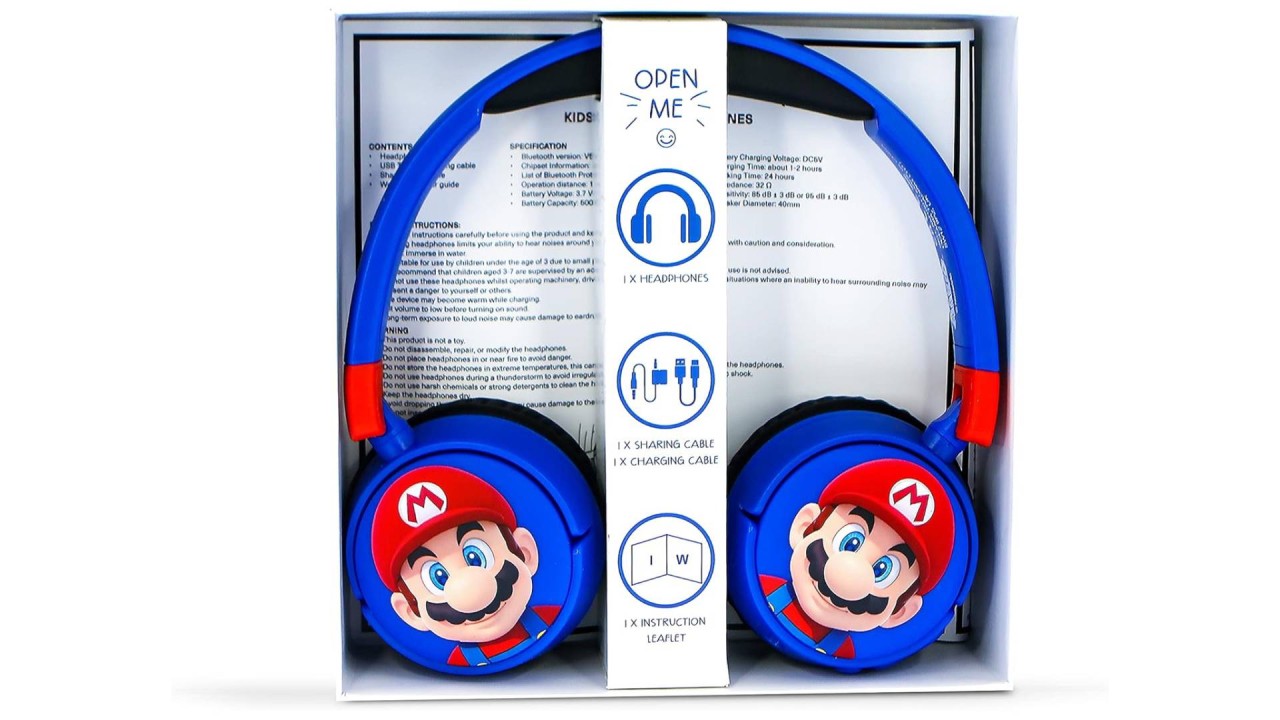 Arată-ți loialitatea față de jocuri cu căștile Bluetooth pentru copii Super Mario.