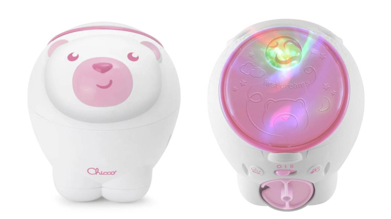 Transformă ora de culcare într-o experiență liniștitoare cu proiectorul Chicco Polar Bear Pink!