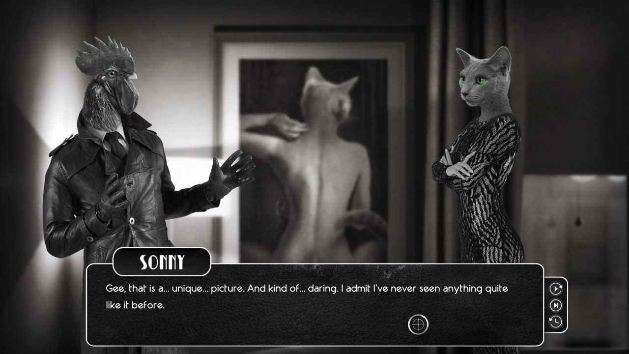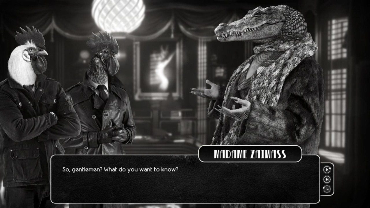 Chicken Police - Paint it RED prezintă un stil vizual uimitor de ciudat, cu fotografii de manipulare artistică și fundaluri 3D realiste. Jocul convinge cu o poveste întunecată și o satiră care amintește de starea de spirit și atmosferă inspirată de filmele clasice de film noir din anii 40.