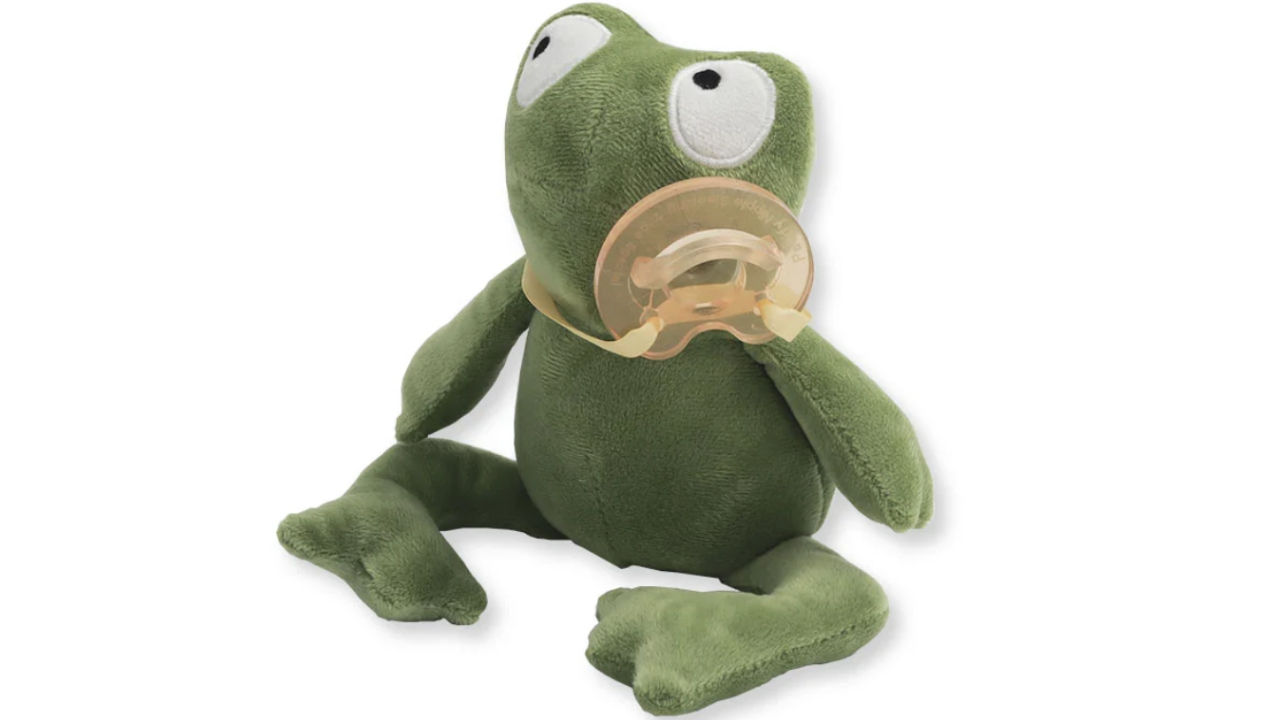 Broasca este proiectată cu o față prietenoasă, zâmbitoare și are în gură suzeta sa caracteristică.
