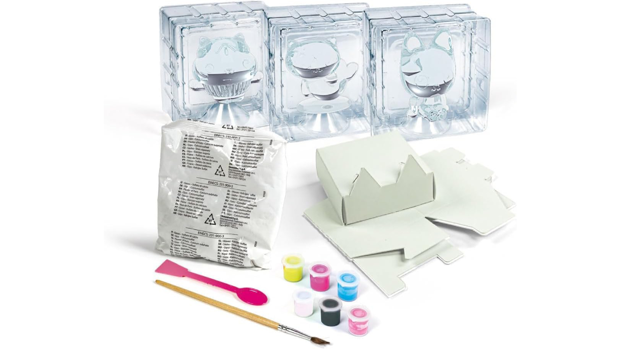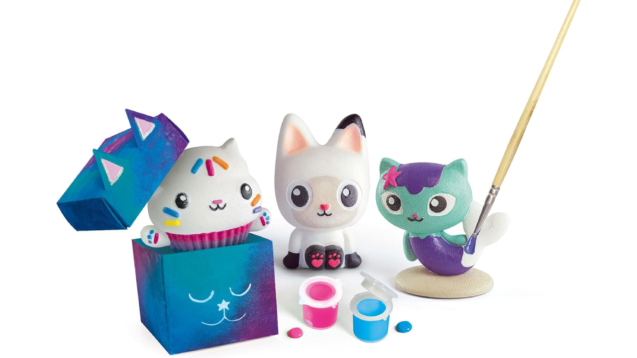 Cu acest nou kit, copiii pot crea și colora sculpturi din ipsos de Paris cu personajele Gabby's Dollhouse, în timp ce își dau frâu liber imaginației.