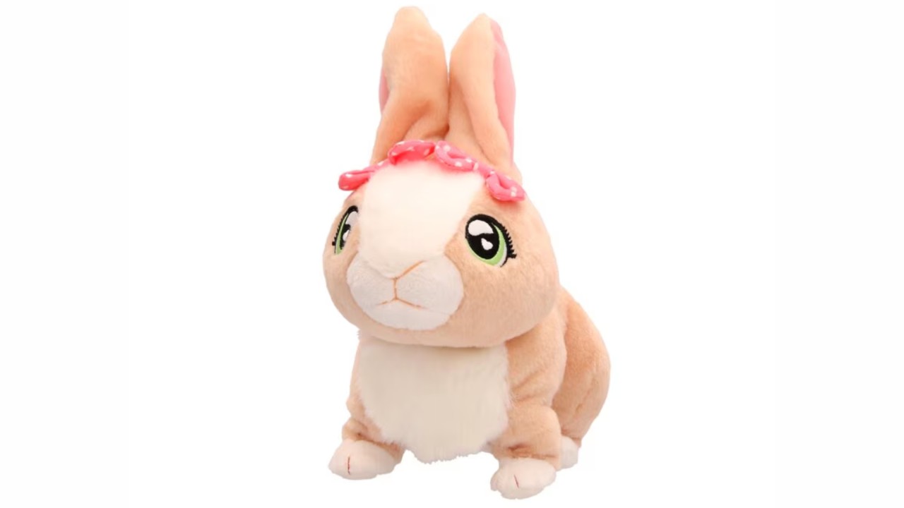 Acest iepuraș maro cu două fundițe roz adorabile scoate tot felul de sunete drăguțe când îl îmbrățișezi. Și privește-i urechile cum se mișcă în timp ce sare prin cameră, exact ca un iepuraș adevărat!