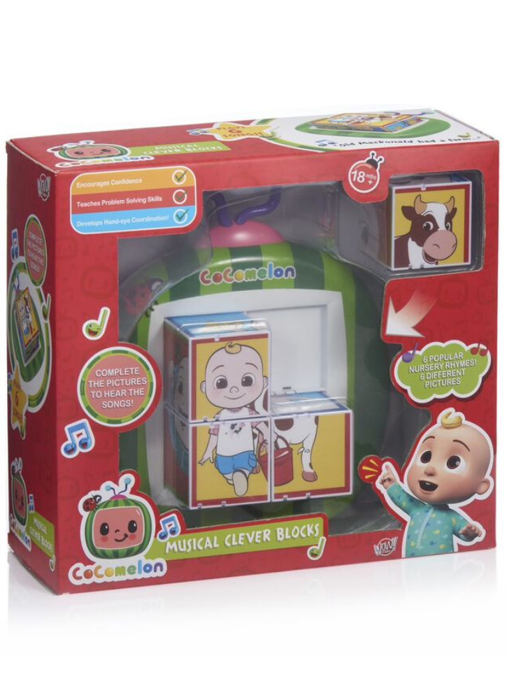 CoComelon Musical Clever Blocks încurajează perseverența, învață abilitățile de rezolvare a problemelor și dezvoltă coordonarea mână-ochi.