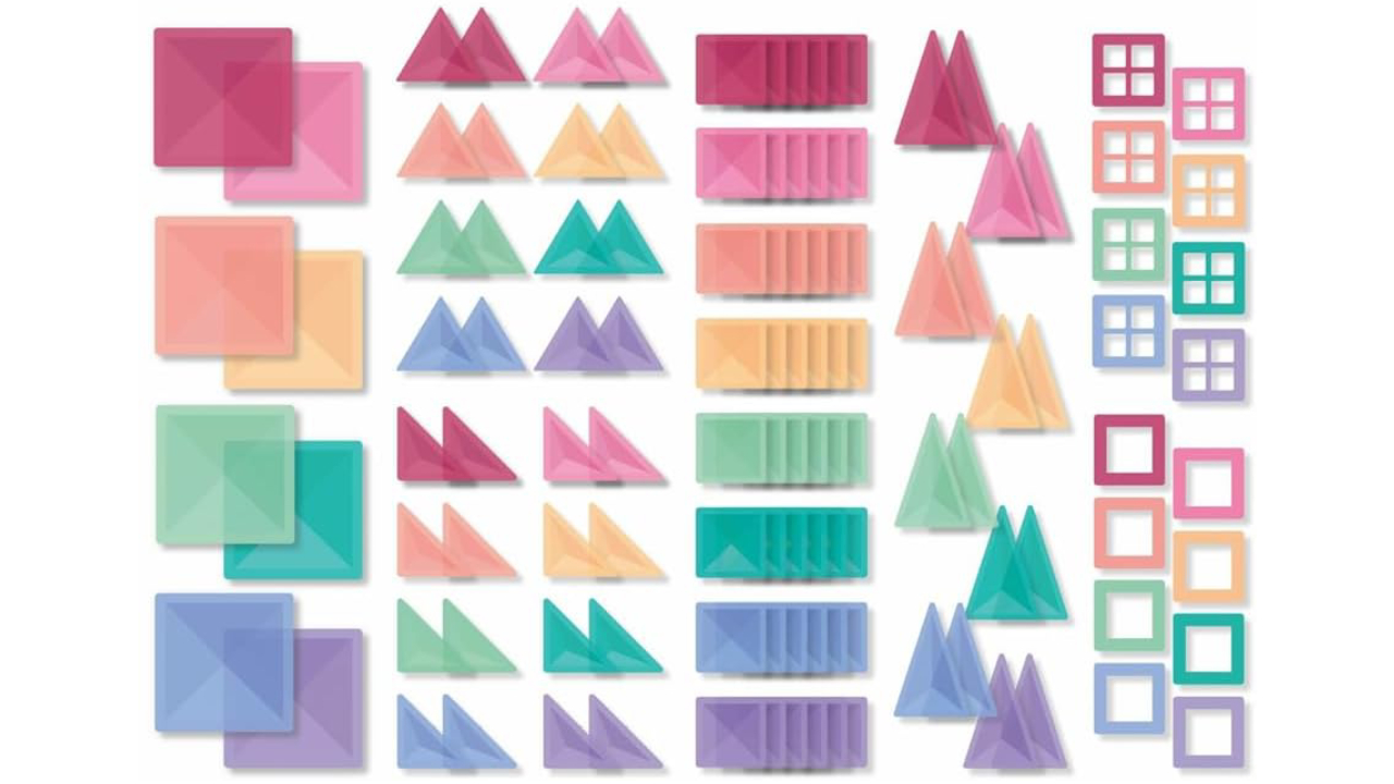 Fie că vă jucați independent sau cu prietenii și familia, Pachetul Connetix Tiles Pastel Creative Pack de 120 de piese.