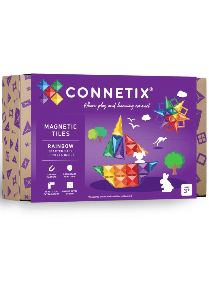 Connetix Rainbow Starter Pack 60 Pieces (CT-R-00060-ST) is an educational building set from the Connetix Tiles range, which includes 60 colorful pieces.