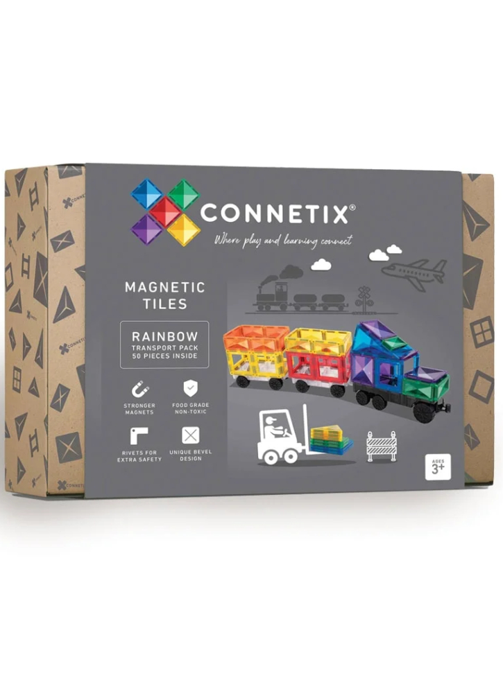 Connetix Transport Pack Rainbow (CT-R-00050-TR) este setul ideal pentru micii exploratori pasionați de vehicule și construcții.
