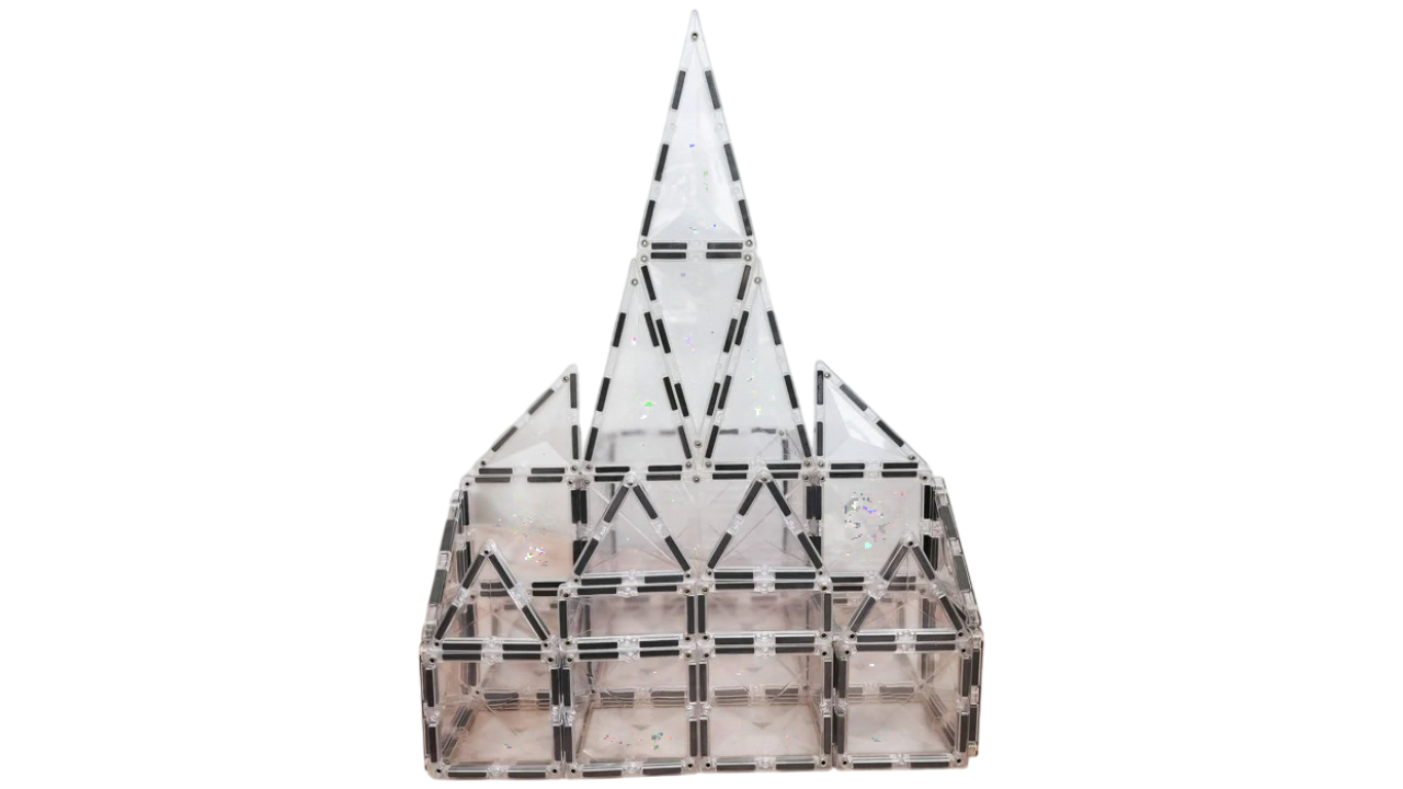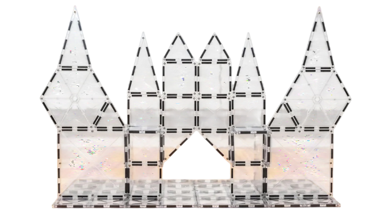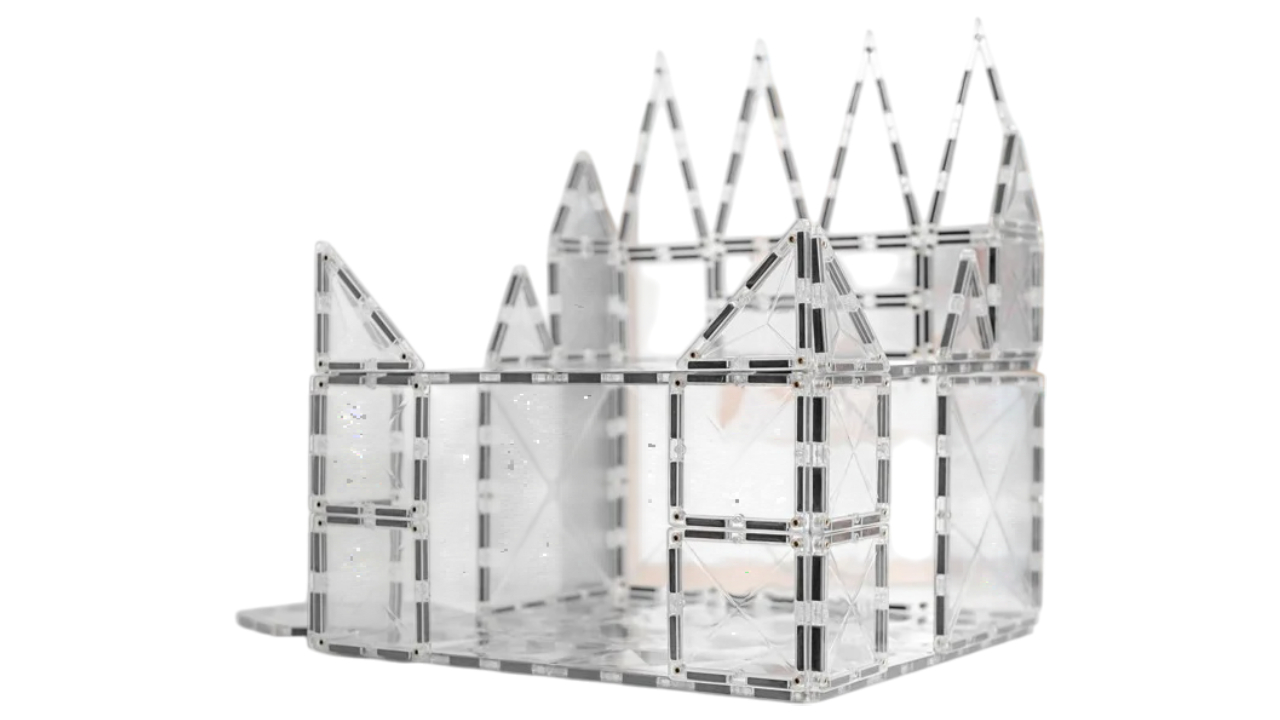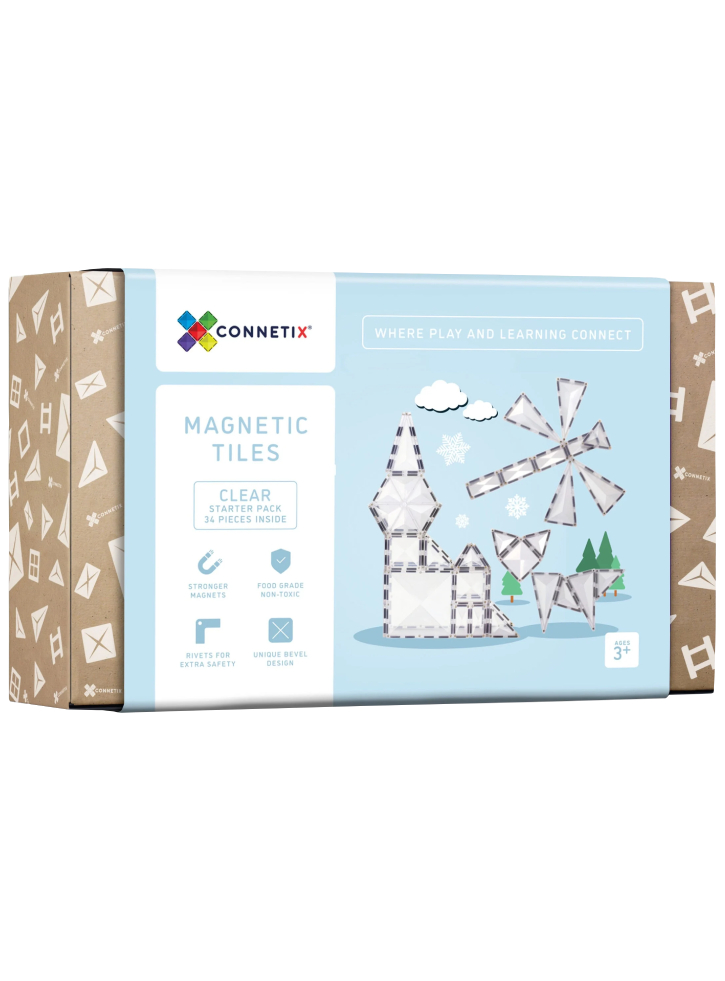 Intrați într-o lume orbitoare de posibilități infinite și imaginație cu pachetul de pornire Connetix Clear de 34 de piese.