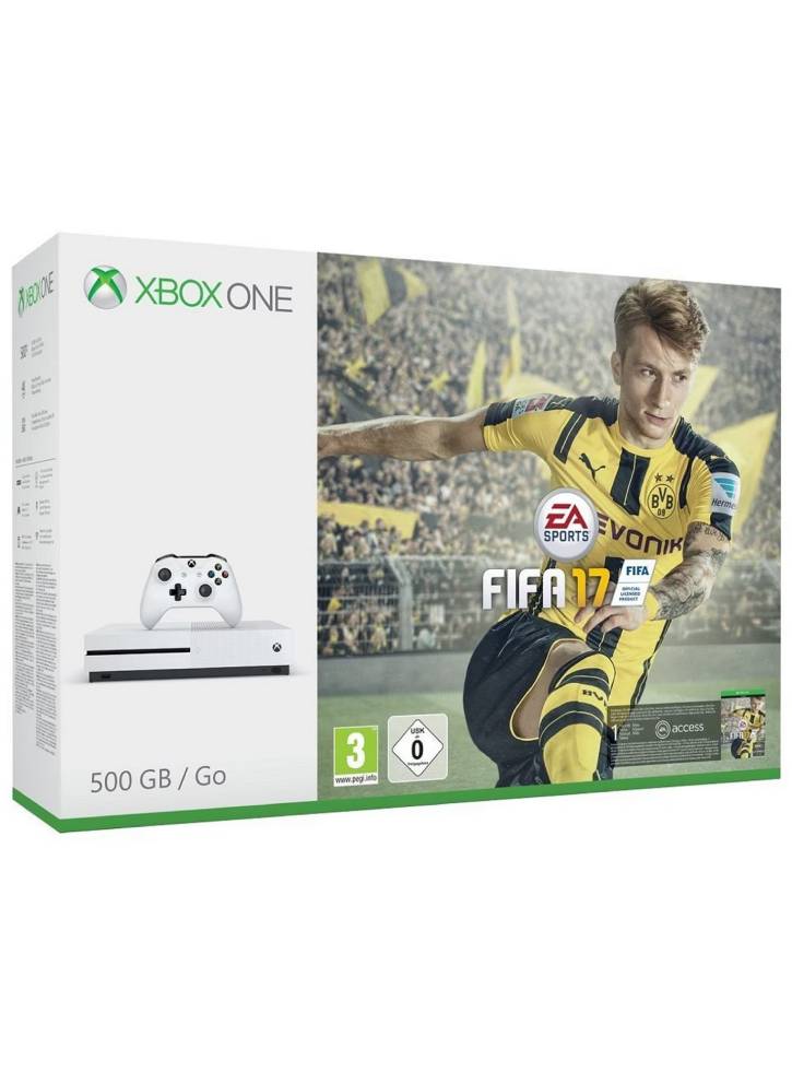 Pachetul Xbox One S FIFA 17 Special Edition Bundle (Gri - 500GB) include: - Consolă Xbox One S, de culoare alba.