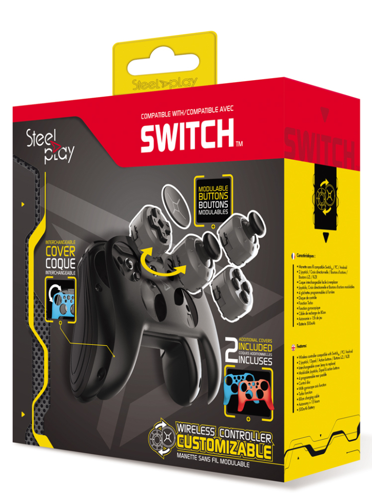 Capacul modular vă permite să vă personalizați controlerul pentru a-l adapta la stilul vostru (2 capace în culorile Joy-con incluse). Și cu discul de coluri, adaptați butonul în formă de cruce pentru direcționare la jocul pe care alegeți să îl jucați.