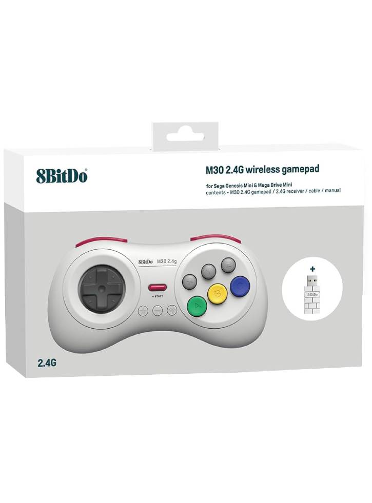Include controler 8Bitdo M30 2.4G, receptor 2.4G și cablu USB.