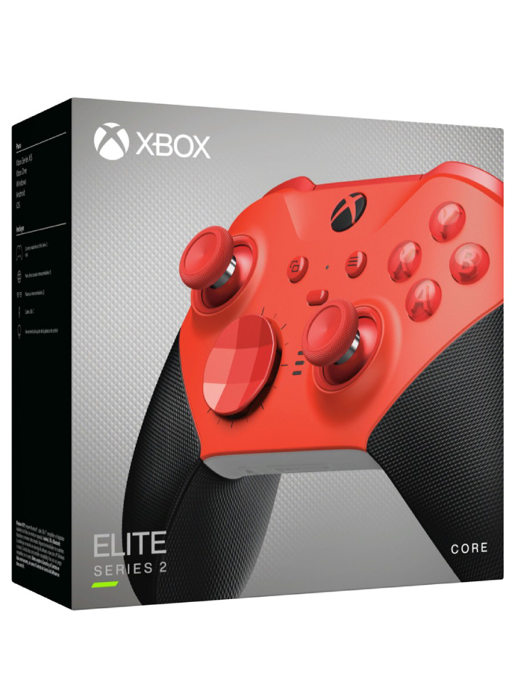 Experimentați Xbox Elite Wireless Controller Series 2 - Core de culoare roșie, cu degete mari cu tensiune reglabilă, mâner cauciucat înfășurat și blocaje mai scurte ale declanșatorului de păr.