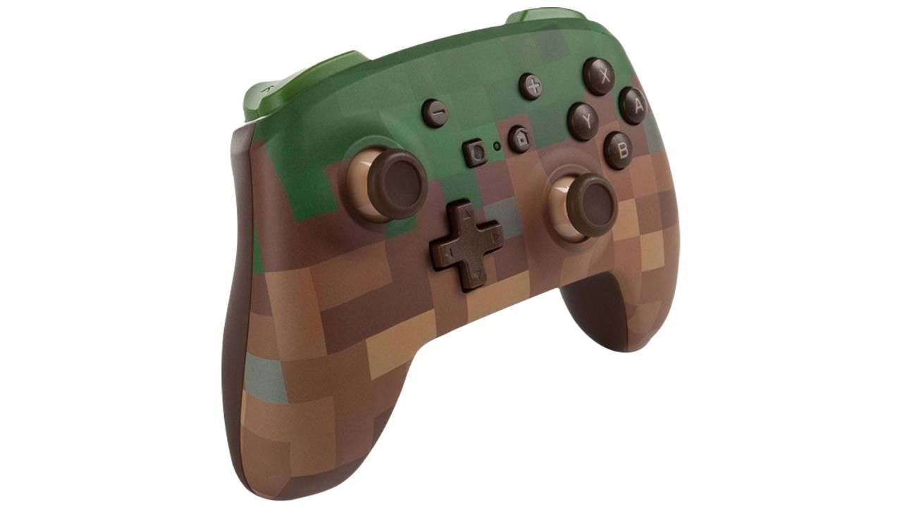 Sărbătorește lansarea Minecraft Dungeons cu acest controler fără fir PowerA Enhanced pentru Nintendo Switch, cu un design unic de Bloc de Iarbă, comenzi de mișcare și două butoane avansate mapabile.