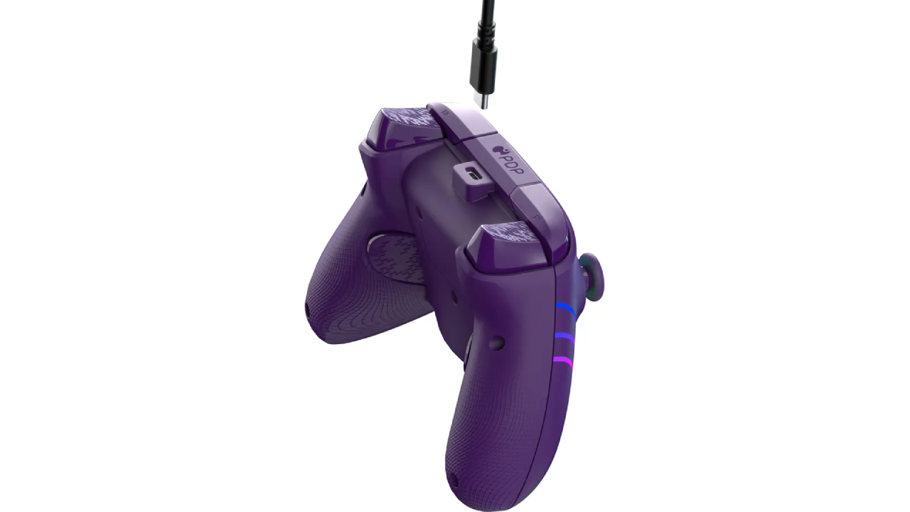 Comutati intre diferite efecte de lumina si culori folosind butonul „functie” sau descarcati aplicatia gratuita PDP Control Hub pentru a schimba cele opt zone de iluminare RGB si multe altele.