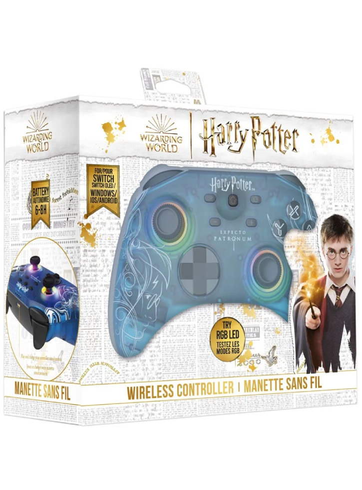 Controlerul de joc wireless cu temă Patronus impresionează nu numai prin motivul frumos redat care îl înfățișează pe Harry cu animalul său patronus, ci și prin iluminarea colorată din jurul pârghiilor și butoanelor de acțiune.