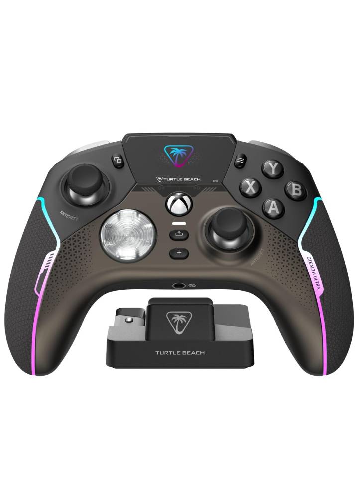 Controlerul Turtle Beach Stealth Ultra este un produs unic, perfect pentru gameri pasionați! Vine însoțit de o husă de transport robustă, care are o fantă specială pentru cablul de încărcare. Conectarea controlerului se face printr-un dock magnetic cu pini pogo, astfel încât încărcarea devine mult mai convenabilă.