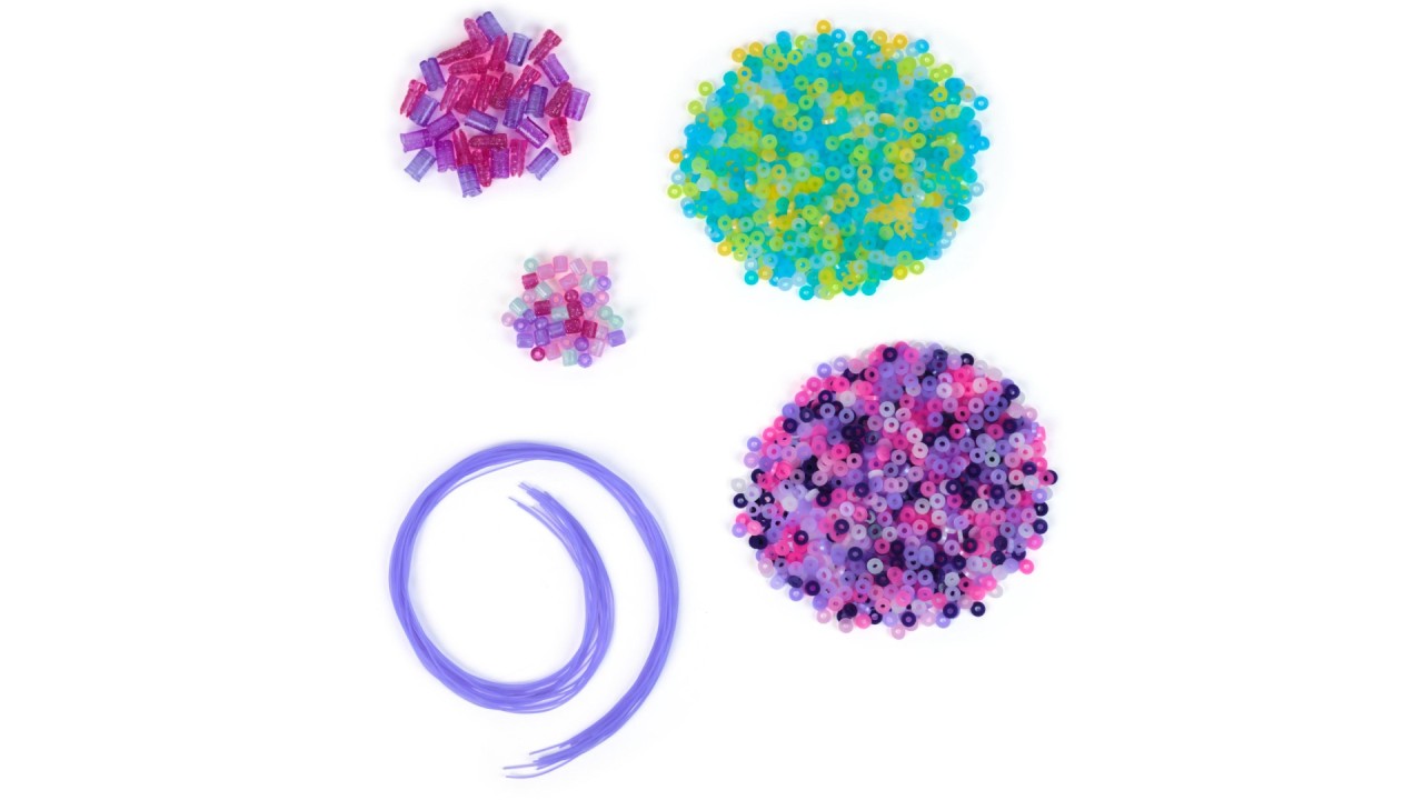 Kit de reumplere care include peste 1200 de mărgele, 18 fire și 12 încuietori. Suficient pentru a realiza până la 15 brățări.
