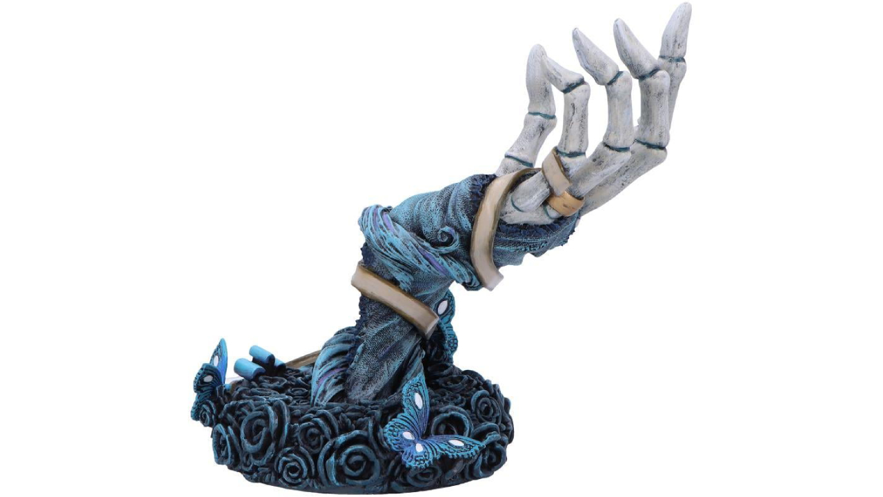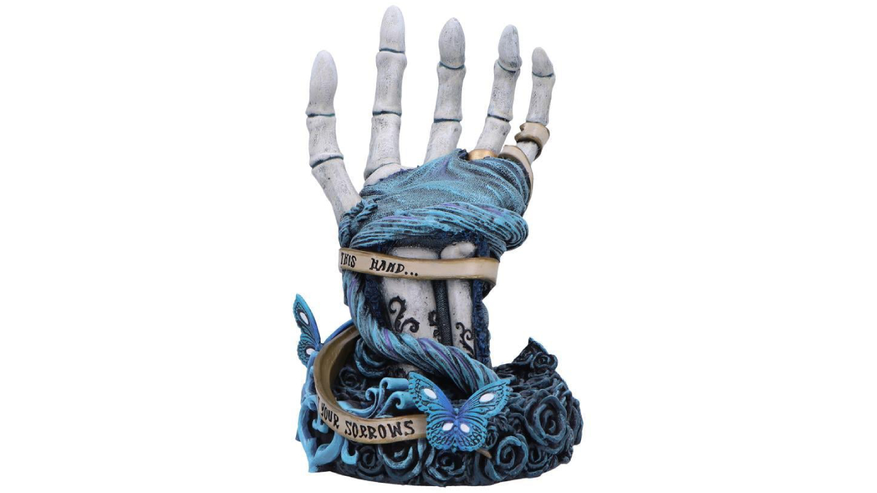 Figurina Corpse Bride „With This Hand” este un produs remarcabil de prezentat în magazinul dvs., un produs obligatoriu pentru a cuceri inimile pasionaților de obiecte de colecție din filme și ale cumpărătorilor de decorațiuni alternative deopotrivă.