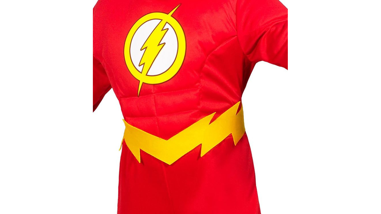 Costumul include o salopetă, o cască și peste cizme, tot ce este necesar pentru a recrea aspectul impresionant al lui Flash.