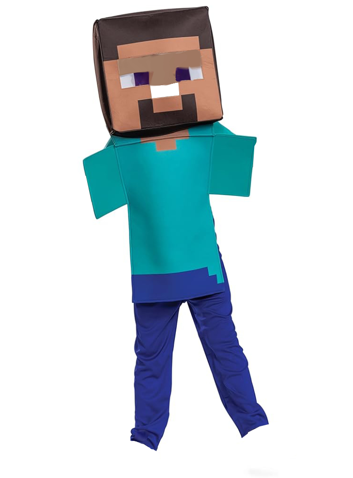 From the popular video game, Minecraft, the adaptable Steve costume includes a jumpsuit with a removable vest and a cloth mask with an elastic headband.