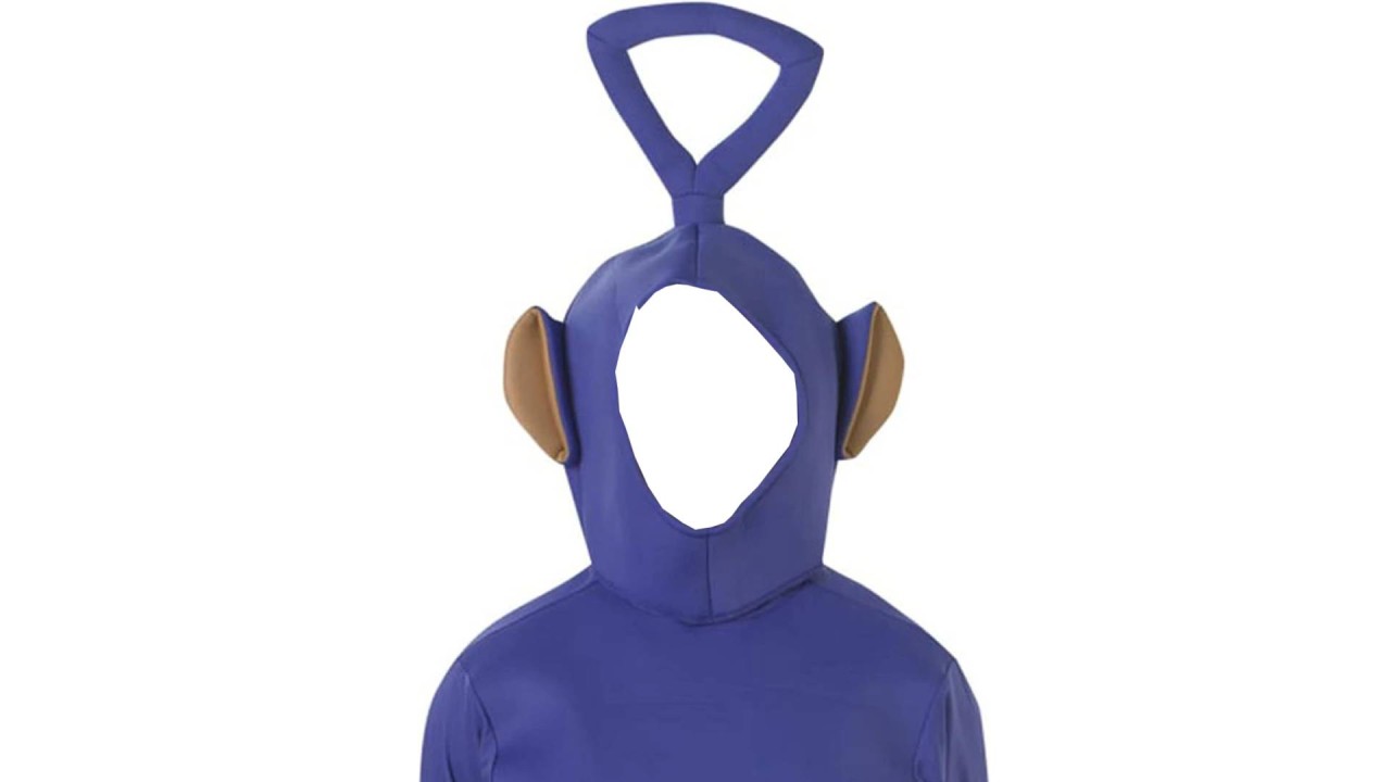 Căciula este realizată cu fidelitate, având urechi și antenă. Acest costum de Teletubbie este perfect pentru un carnaval sau o petrecere tematică.