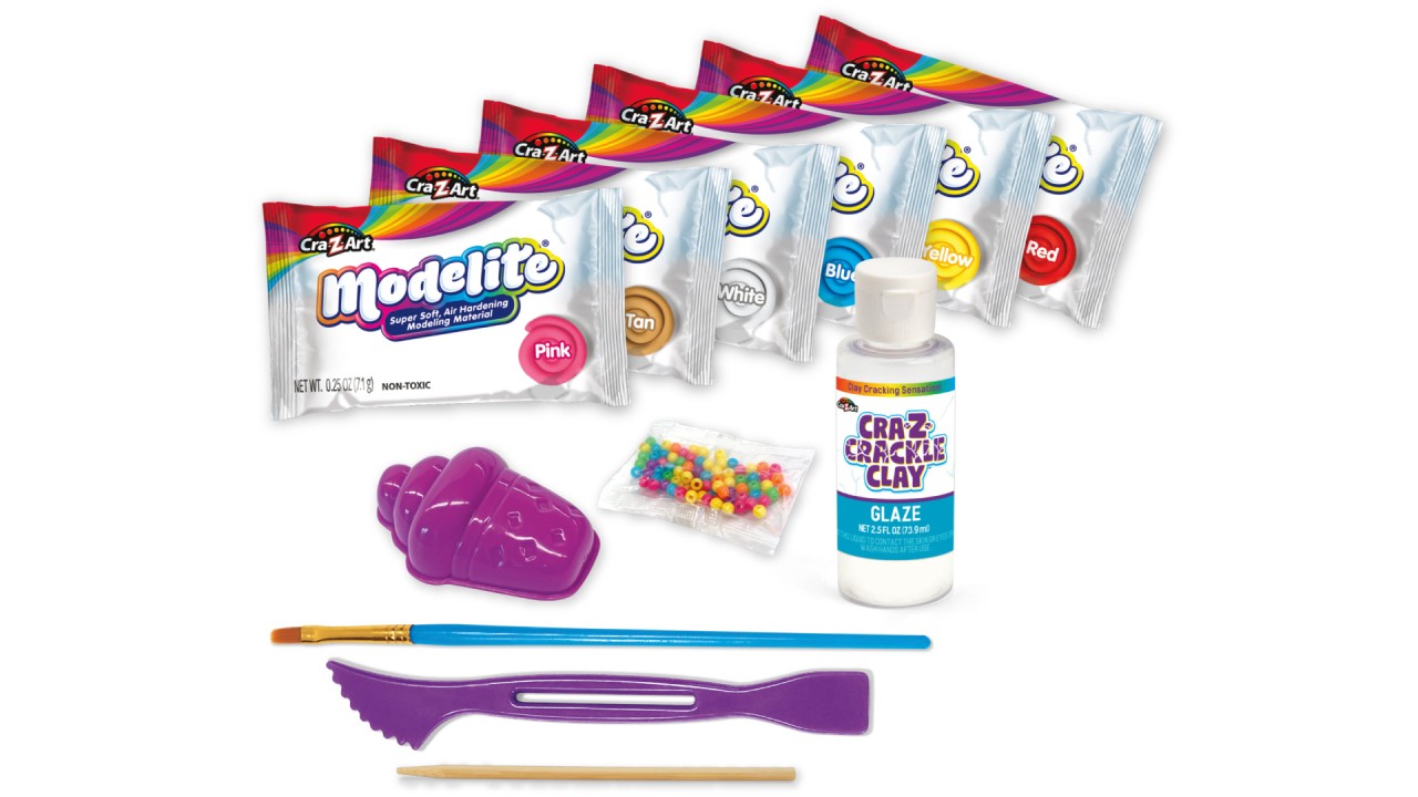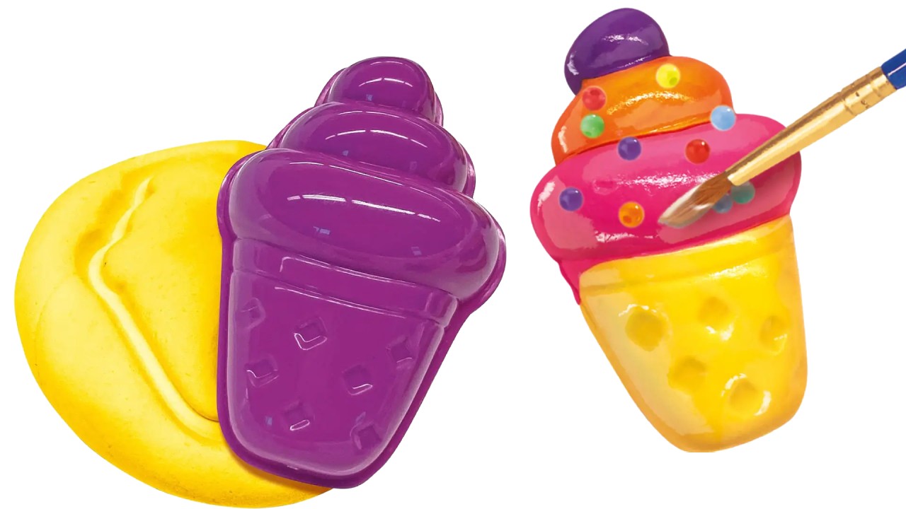 Glazura specială cu uscare rapidă, vopsea, pensule și unealta de sculptură, veți putea crea conuri de înghețată, gogoși, acadele și multe altele.