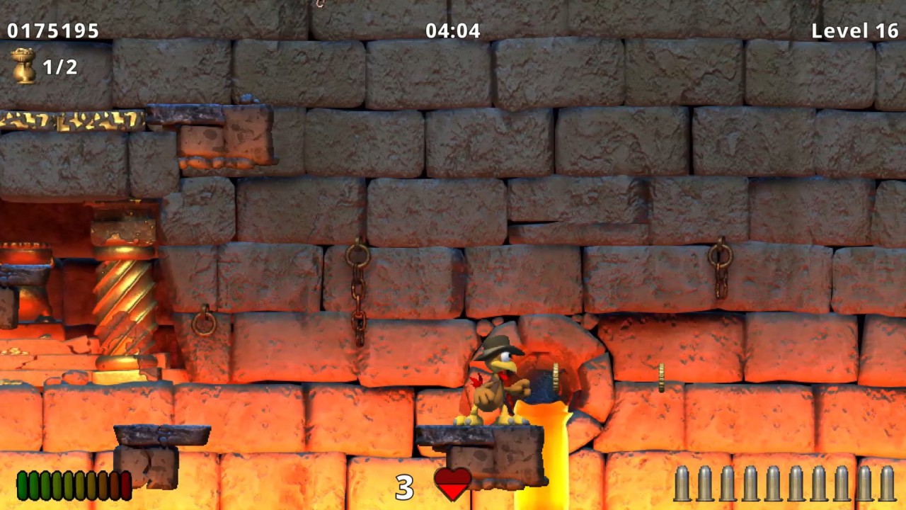 Prin sărituri, legănat, lovituri cu piciorul, boxerit și uneori chiar tragere, Crazy Chicken se străduiește prin adâncurile junglei pentru a găsi tezaurul legendar: Amuleta lui Whatsit.