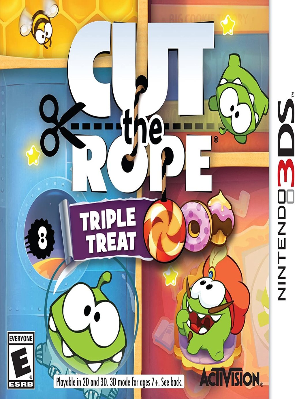 Candy food with the cutest monster in the universe, Nom man, in a captivating frenzy, with Cut The Rope: Triple Treat. Now you can play the 3 favorite CUT THE ROPE games on 3DS with over 650 levels and over 50 hours of play. Challenge your friends through online rankings and unlock new levels as you are perfecting your chord cutting skills on Nintendo 3DS! What's in the box? Three games in one time: Cut the rope cut rope: Experiments Cut the rope: Time trip Take the brackets to the next level with the precision of the 3DS style over 650 levels and 50 hours of play, including Steam, Lantern and Boxes of cheese! Boards Man Online Man Stories