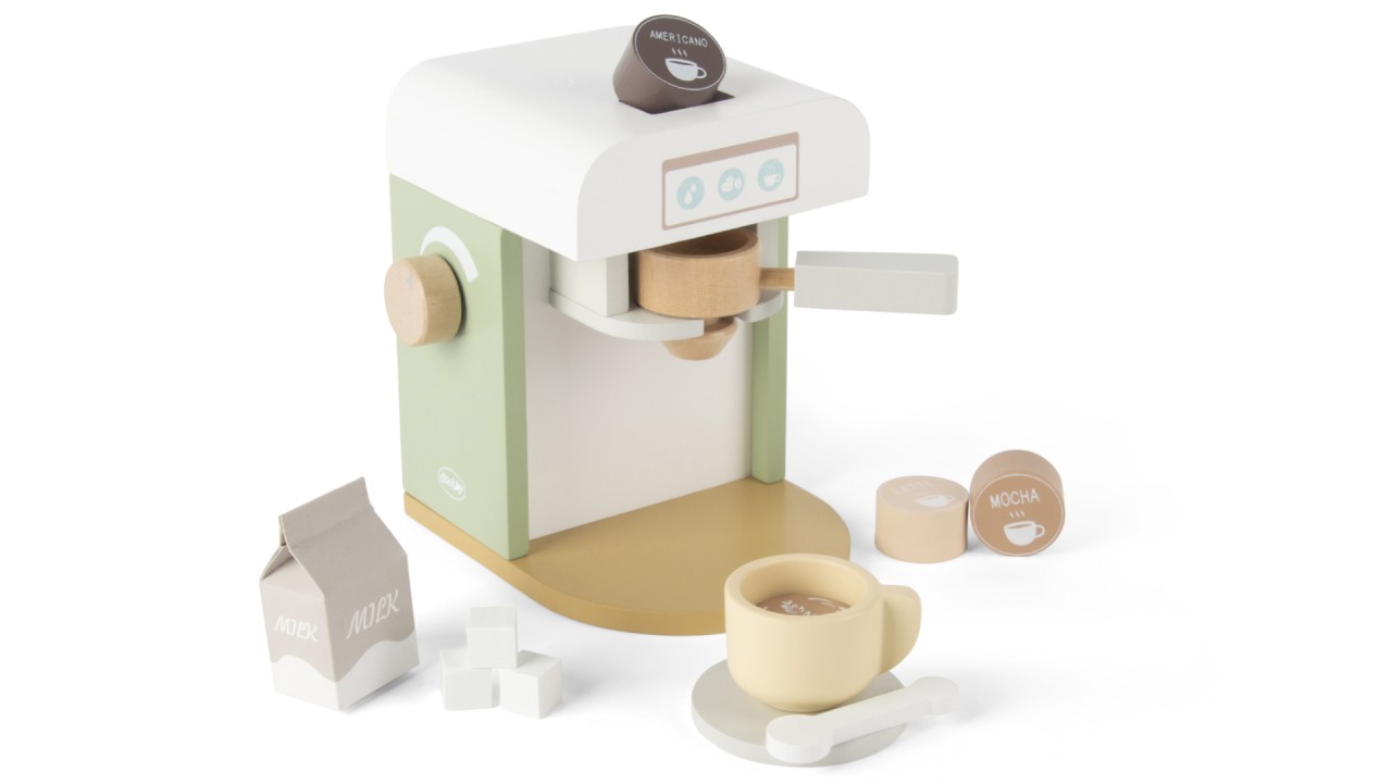 Kids can play as real bartenders with coffee plungers, coffee pods, milk and more.
